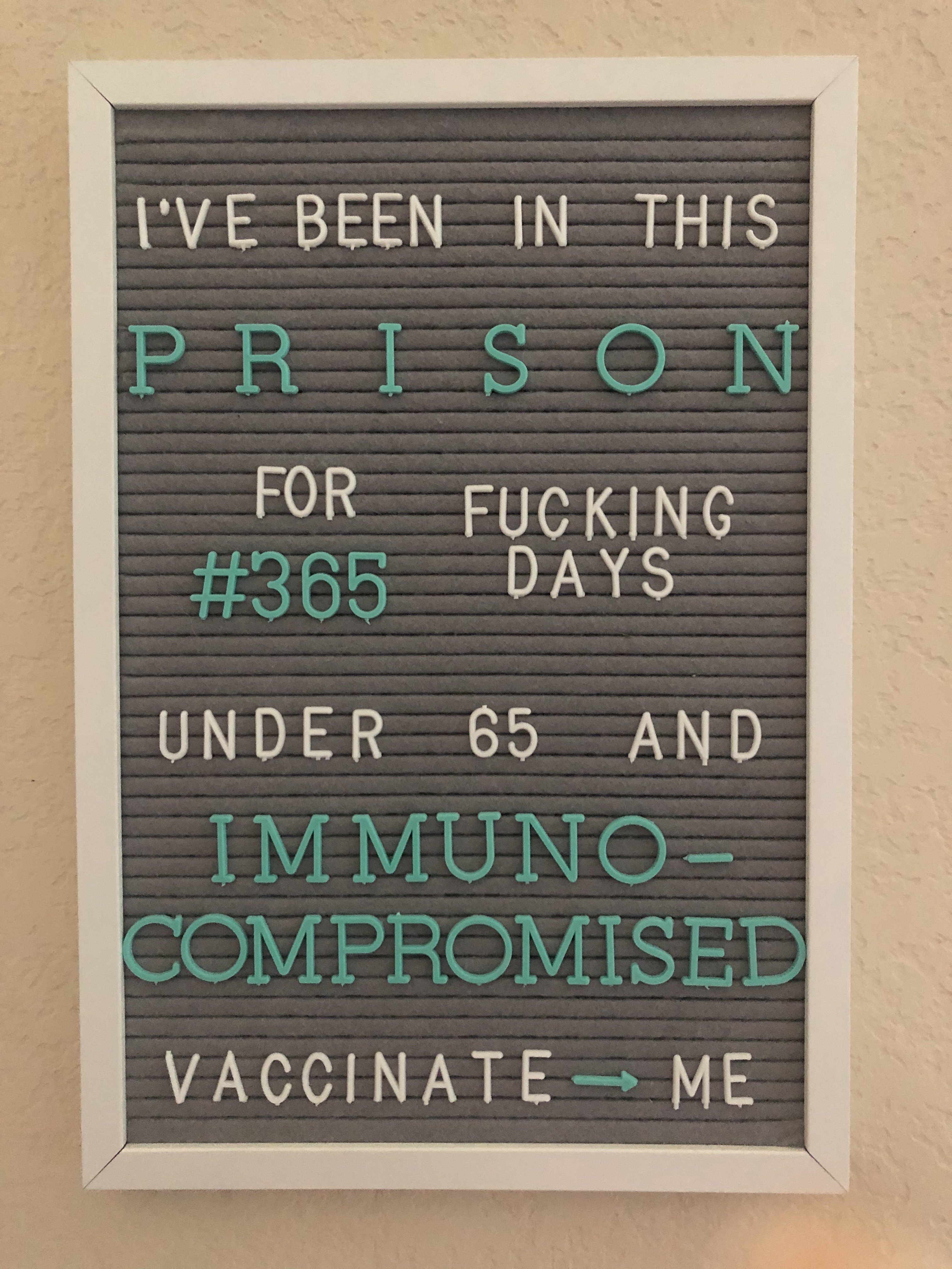 I wrote this blog in March 2021. Ultimately, I ended up spending 418 days in quarantine before I was finally vaccinated and free to live my life.